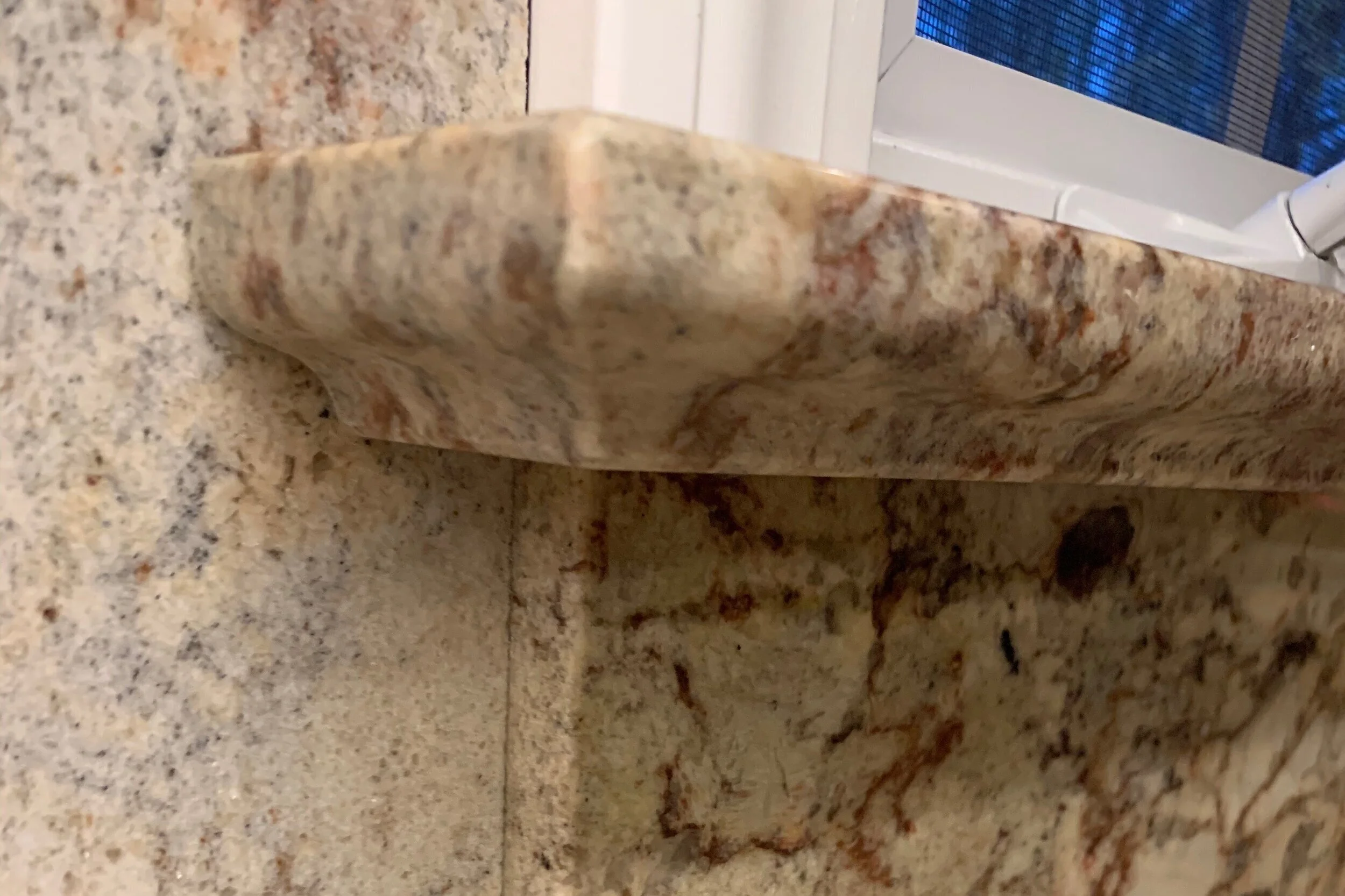 This kitchen’s owner is a published cookbook author who loves the functionality of this custom kitchen. The new cabinets, custom trim work and feet on the sink cabinet were painted in a matte finish to match the cabinetry and look like furniture which blends into the home’s traditional style. Interest points are created not only in the granite and selected hardware for the cabinetry, but also in the granite details around the kitchen sink.
